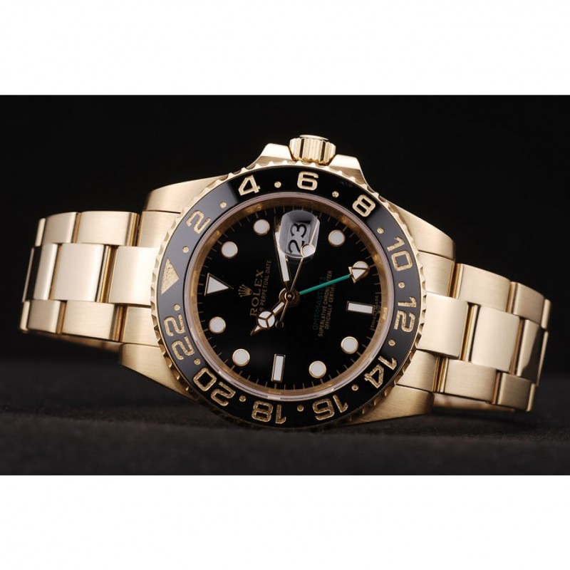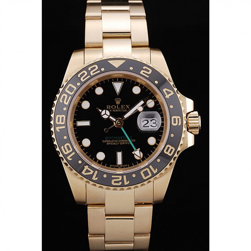 Die Uhr verfügt über ein 18-karätig vergoldetes Gehäuse sowie ein 18-karätig vergoldetes, geschnitztes Gehäuseboden. Das auffällige schwarze Keramik-Drehbezel ist mit einem 24-Stunden-Marker ausgestattet, was sie zur perfekten Wahl für Reisende und Abenteurer macht. Der geschützte Ziffernblatt in tiefschwarzer Farbe verleiht der Uhr einen markanten Look, der durch den 18-karätig vergoldeten Schnitzkrone mit dem Rolex-Logo ergänzt wird.